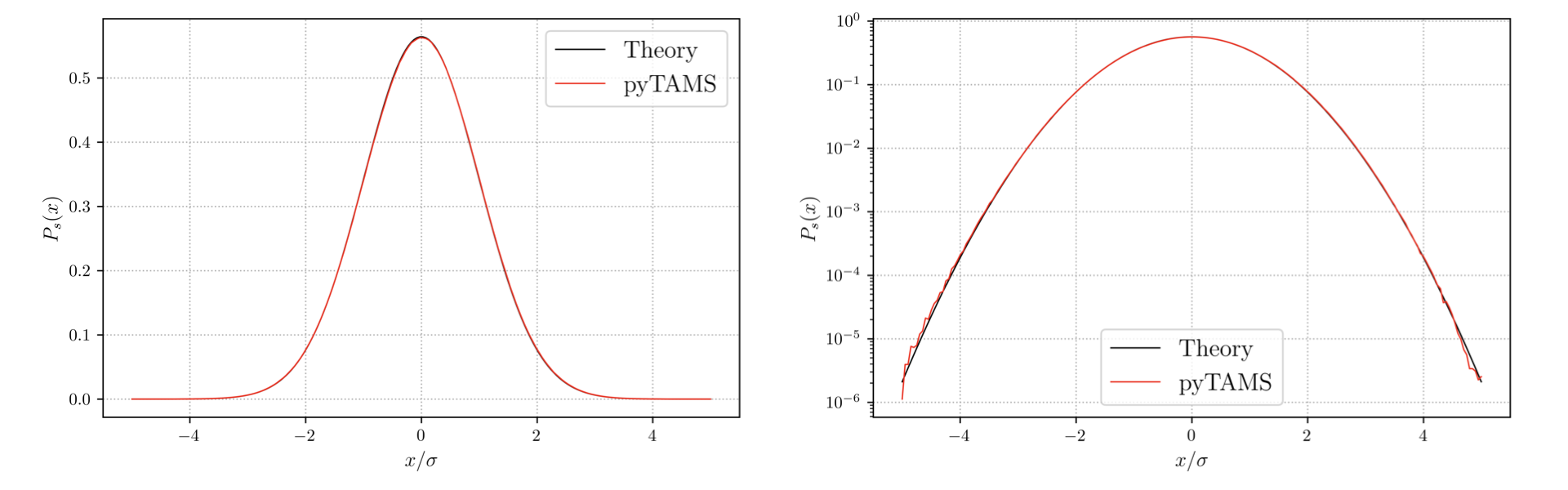 Figure 4 :Stationary distribution \(P_s(x)\) of the OU process obtained with TAMS¶
